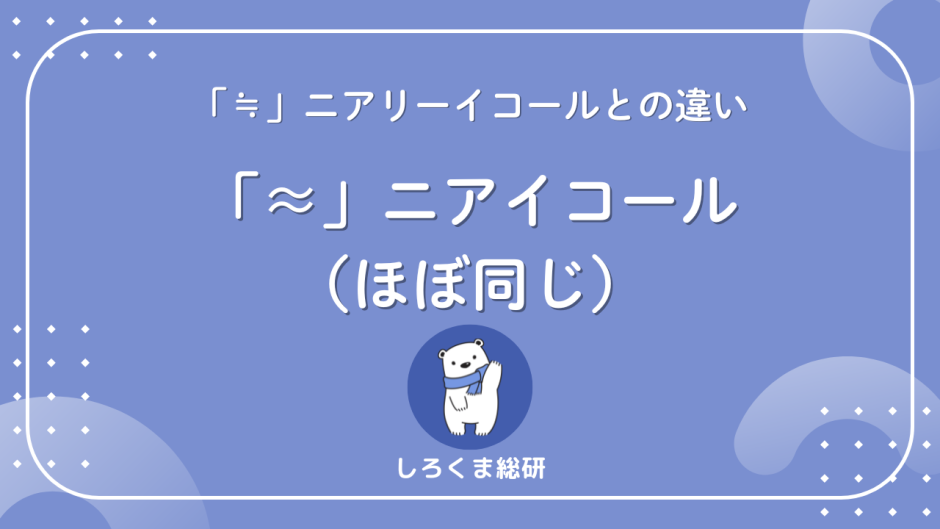 なお「ニアイコール」と「ニアリーイコール」は同じ意味で使われます。英語の “nearly equal” が由来で、表記のゆれがあるだけです。本記事では「ニアイコール」に統一して解説します。